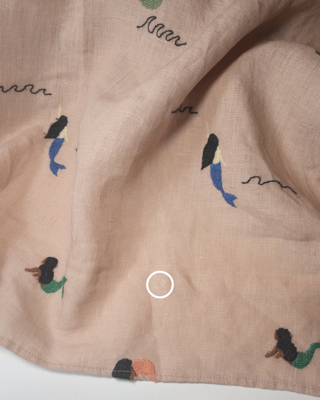 生地の一部に繊維の乱れが見られる箇所があり、